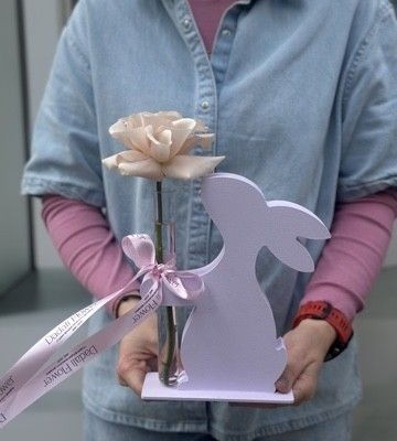 ЗАЙКА С КРЕМОВОЙ РОЗОЙ В КОЛБЕ