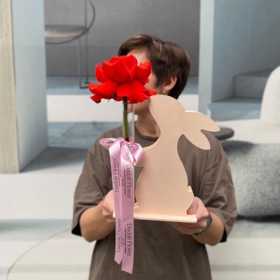ЗАЙКА С КРАСНОЙ РОЗОЙ В КОЛБЕ