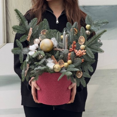 БУКЕТ В СТЕКЛЯННОЙ ВАЗЕ"ЧУДЕСА"