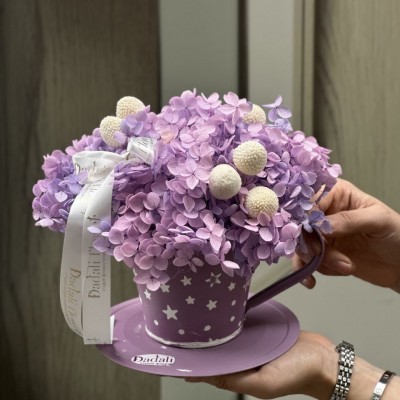 ЧАШЕЧКА "ЧЕРНИЧНЫЙ БАБЛ ТИ" СТАБИЛИЗИРОВАННАЯ ГОРТЕНЗИЯ
