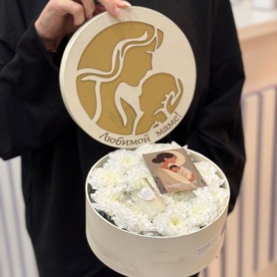 Бокс "Для мамы Беж" с шоколадом ручной работы