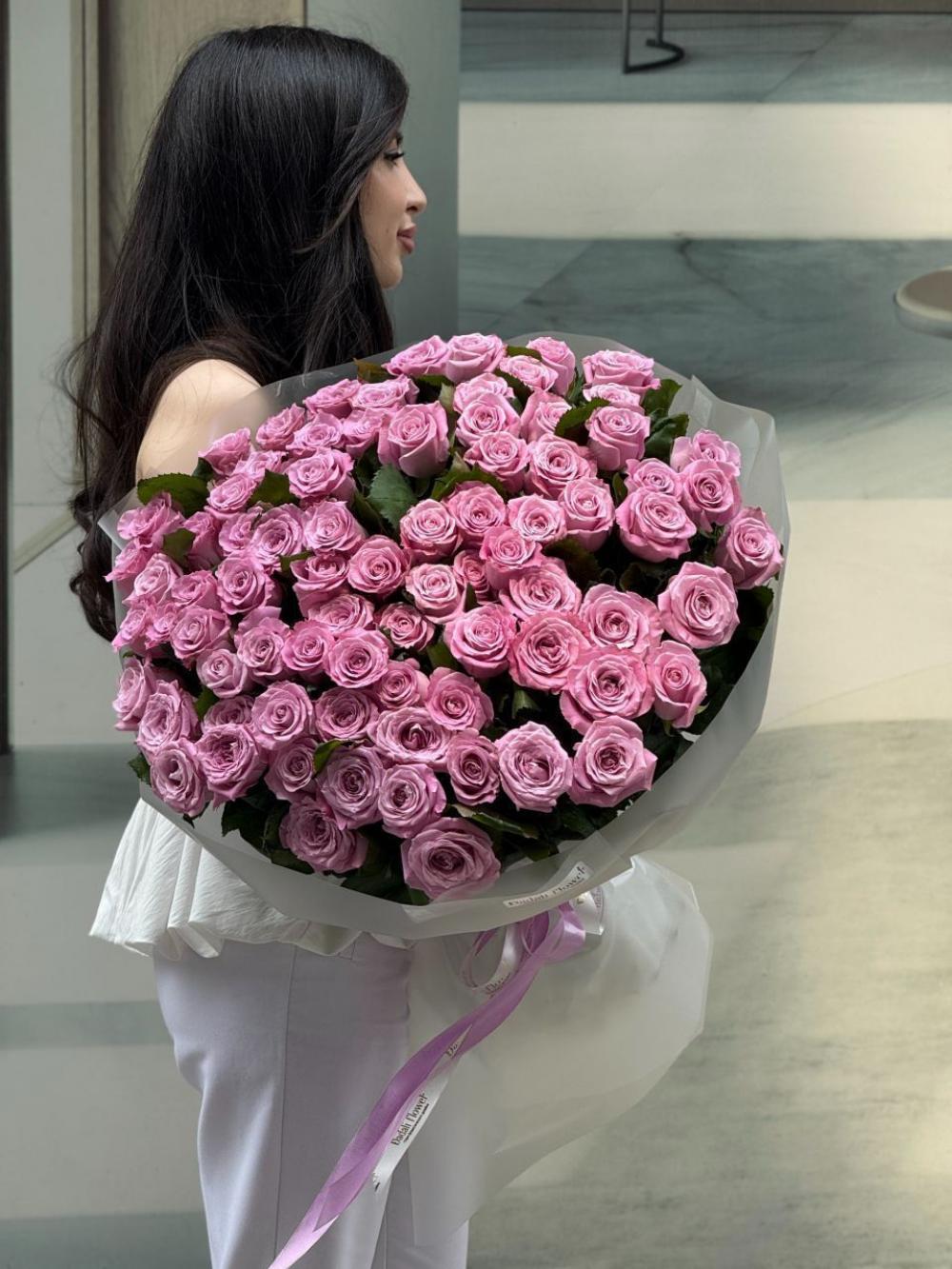 Букет из 81 розы пыльно-розового цвета"Миритин". Вы всегда можете купить такой букет с доставкой в нашем онлайн магазине цветов и подарков находящийся в г.Нальчике. Дарите настроение с Dadali flower!!! Опытные флористы сформируют ваш букет из свежих цветов, и курьер в течении часа доставит Ваш букет по адресу лично в руки получателю, получив в ответ благодарную улыбку!