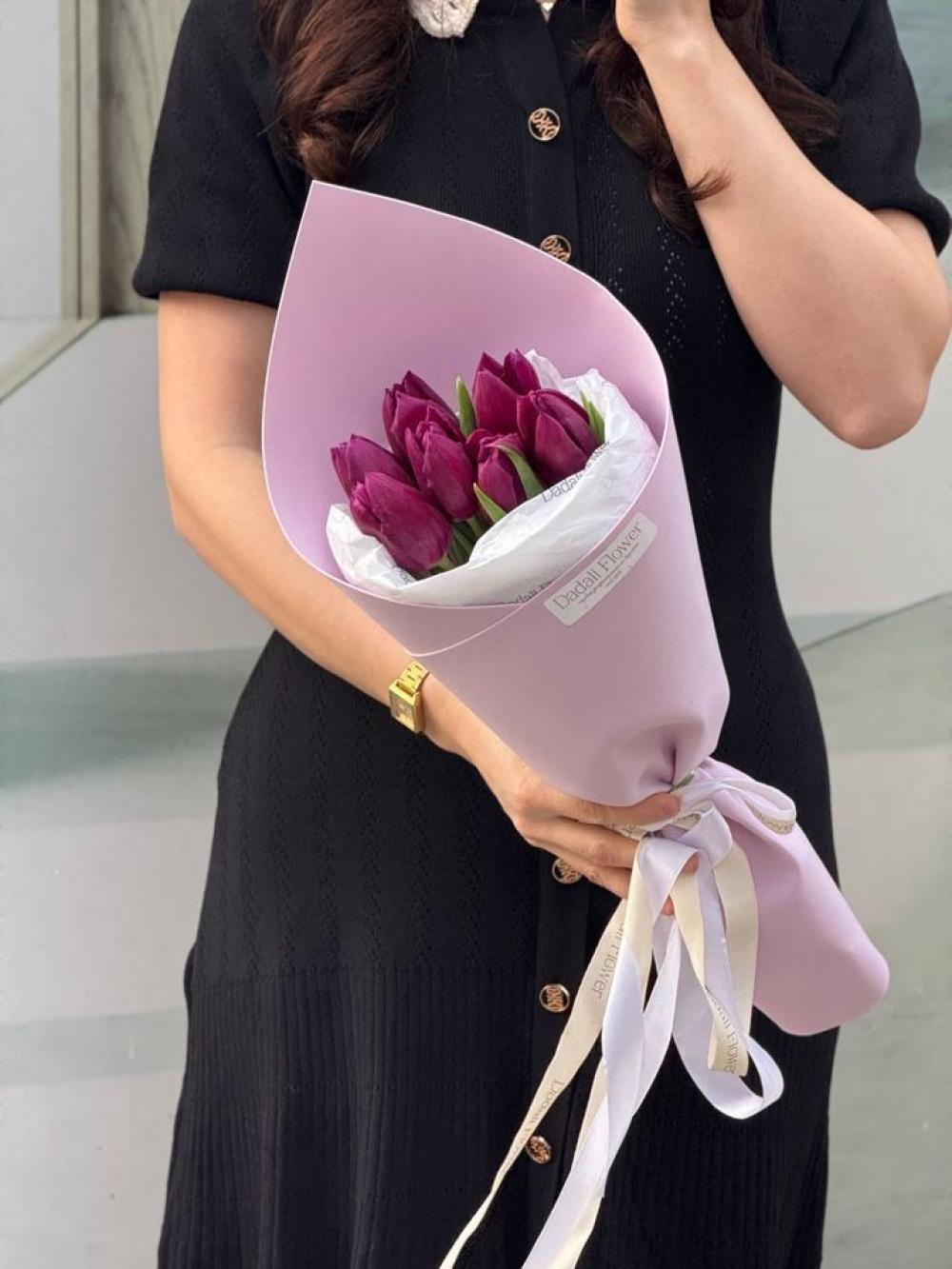 Букет из 7 тюльпанов в упаковке. Этот букет - само воплощение Весны, замершее в нежных лепестках. Магия этих цветов в том, как они продолжают расти и менять свои изгибы прямо в вазе. Вы всегда можете заказать такой букет на нашем сайте, цвет можно подобрать с менеджером по номеру телефона 89280817005.