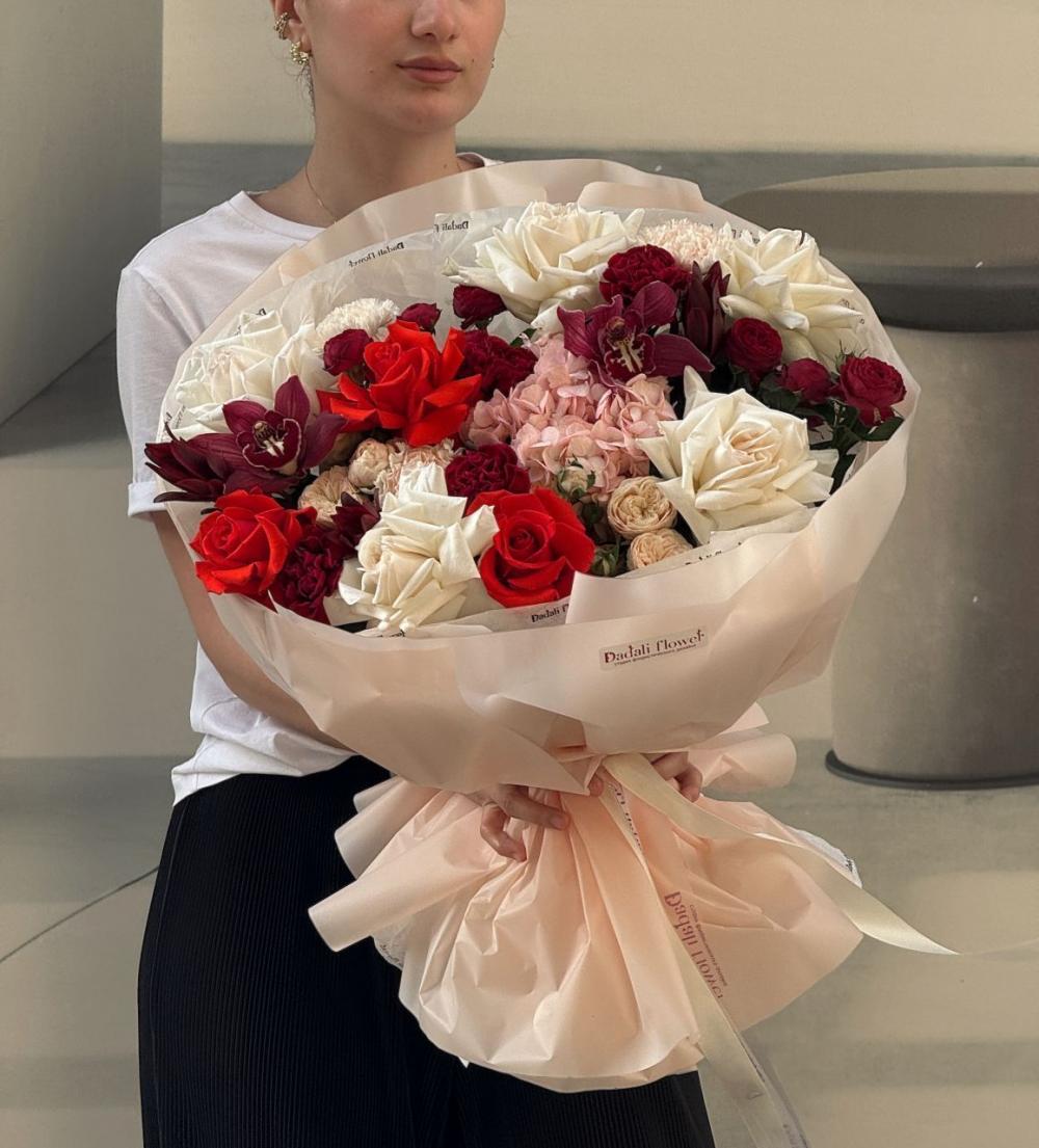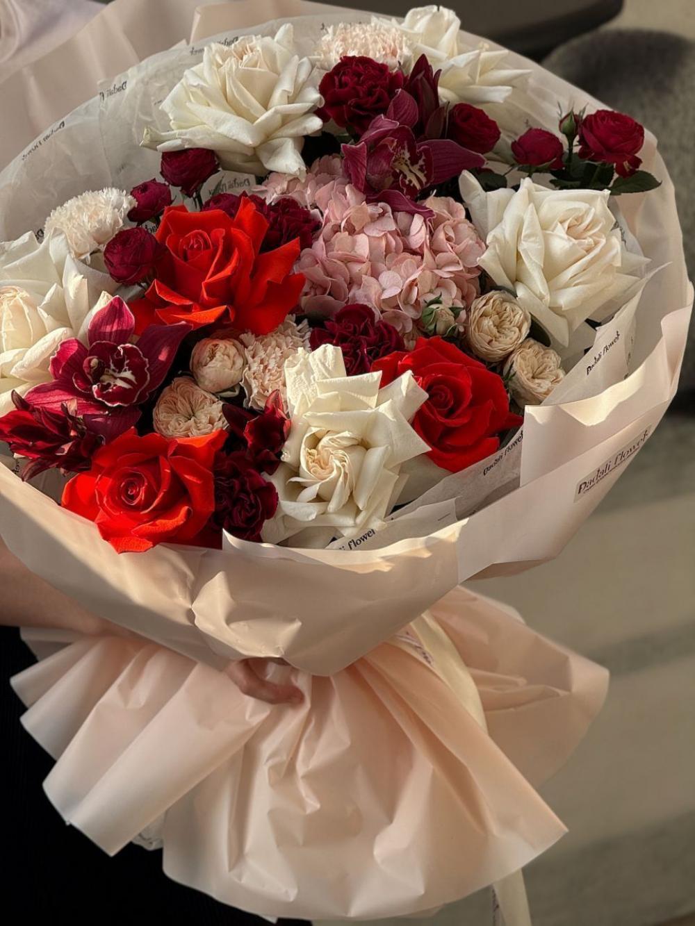 На выполнение этой композиции нам понадобится чуть больше времени. Каждый наш букет уникален. Все их невозможно повторить в точности из за сезонности и природной уникальности внешнего вида каждого цветка. Но мы сохраним размер, атмосферу и стилистику. Если вы хотите выбрать готовую композицию, рекомендуем перейти в раздел Онлайн-Витрины