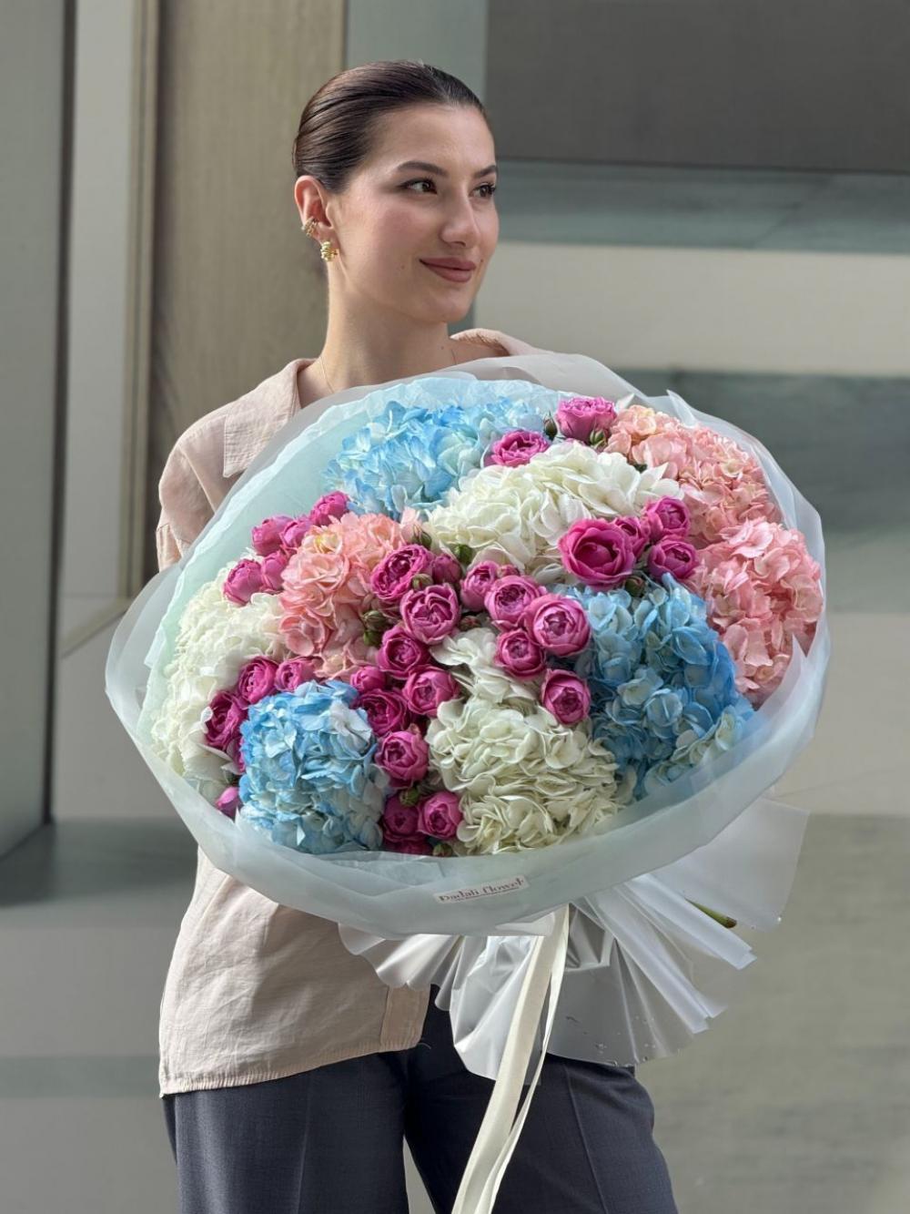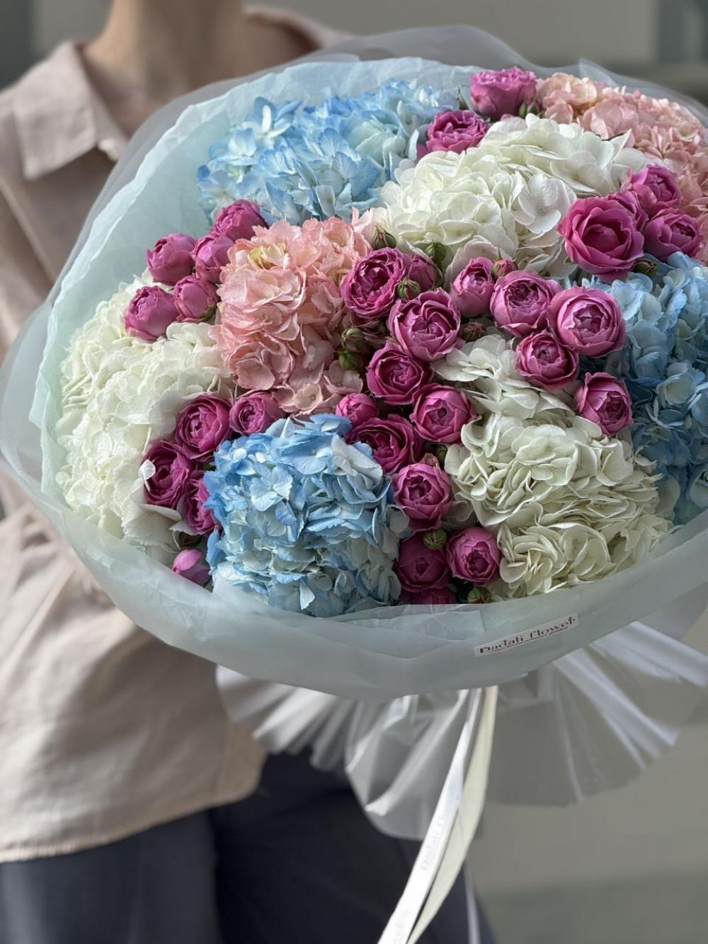 Сборный букет с гортензией и кустовой розой