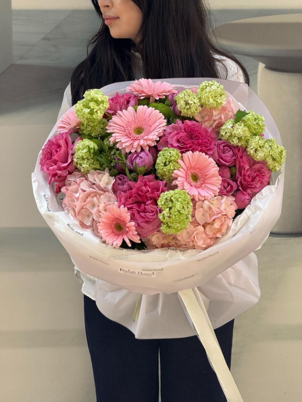На выполнение этой композиции нам понадобится чуть больше времени. Каждый наш букет уникален. Все их невозможно повторить в точности из за сезонности и природной уникальности внешнего вида каждого цветка. Но мы сохраним размер, атмосферу и стилистику. Если вы хотите выбрать готовую композицию, рекомендуем перейти в раздел Онлайн-Витрины