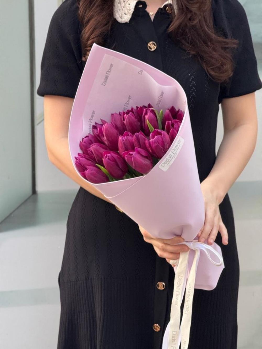 Букет из 15 тюльпанов в упаковке. Этот букет - само воплощение Весны, замершее в нежных лепестках. Магия этих цветов в том, как они продолжают расти и менять свои изгибы прямо в вазе. Вы всегда можете заказать такой букет на нашем сайте, цвет можно подобрать с менеджером по номеру телефона 89280817005.
