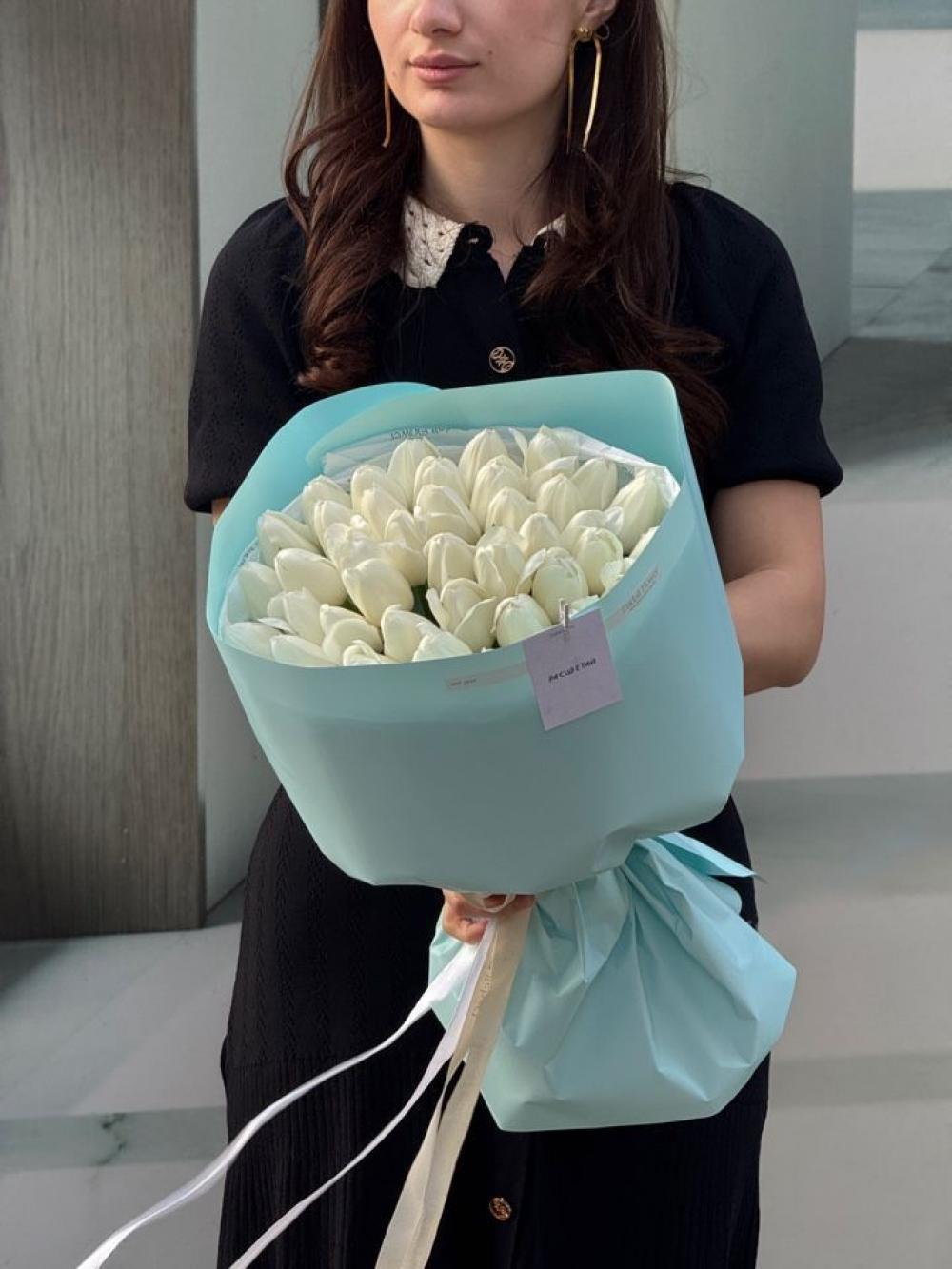 Букет из 45 тюльпанов в упаковке. Этот букет - само воплощение Весны, замершее в нежных лепестках. Магия этих цветов в том, как они продолжают расти и менять свои изгибы прямо в вазе. Вы всегда можете заказать такой букет на нашем сайте, цвет можно подобрать с менеджером по номеру телефона 89280817005.
