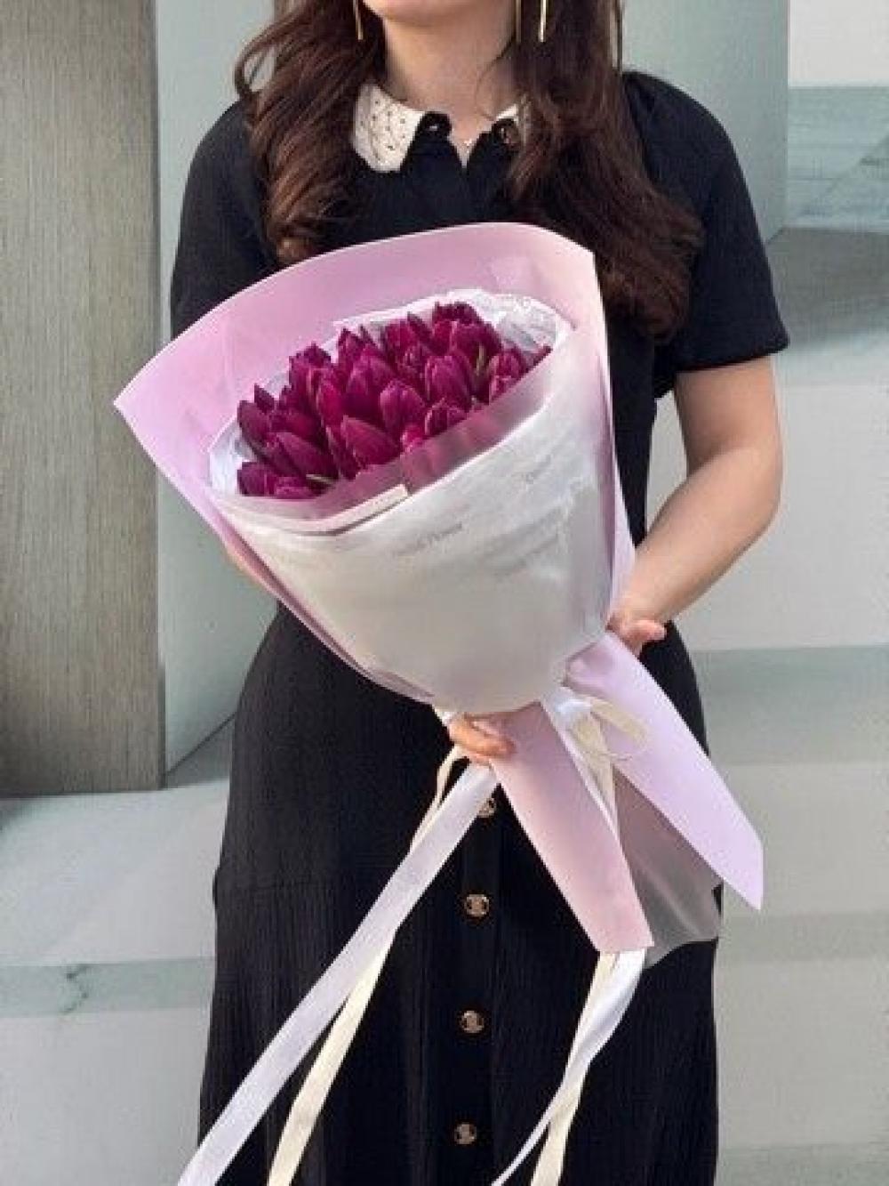 Букет из 21 тюльпанов в упаковке. Этот букет - само воплощение Весны, замершее в нежных лепестках. Магия этих цветов в том, как они продолжают расти и менять свои изгибы прямо в вазе. Вы всегда можете заказать такой букет на нашем сайте, цвет можно подобрать с менеджером по номеру телефона .