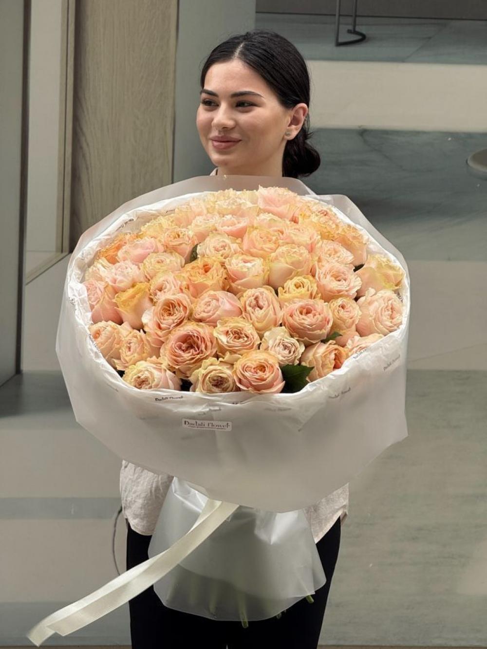 Яркий классический букет на любой повод из пионовидных роз сорта "Принцесса краун"