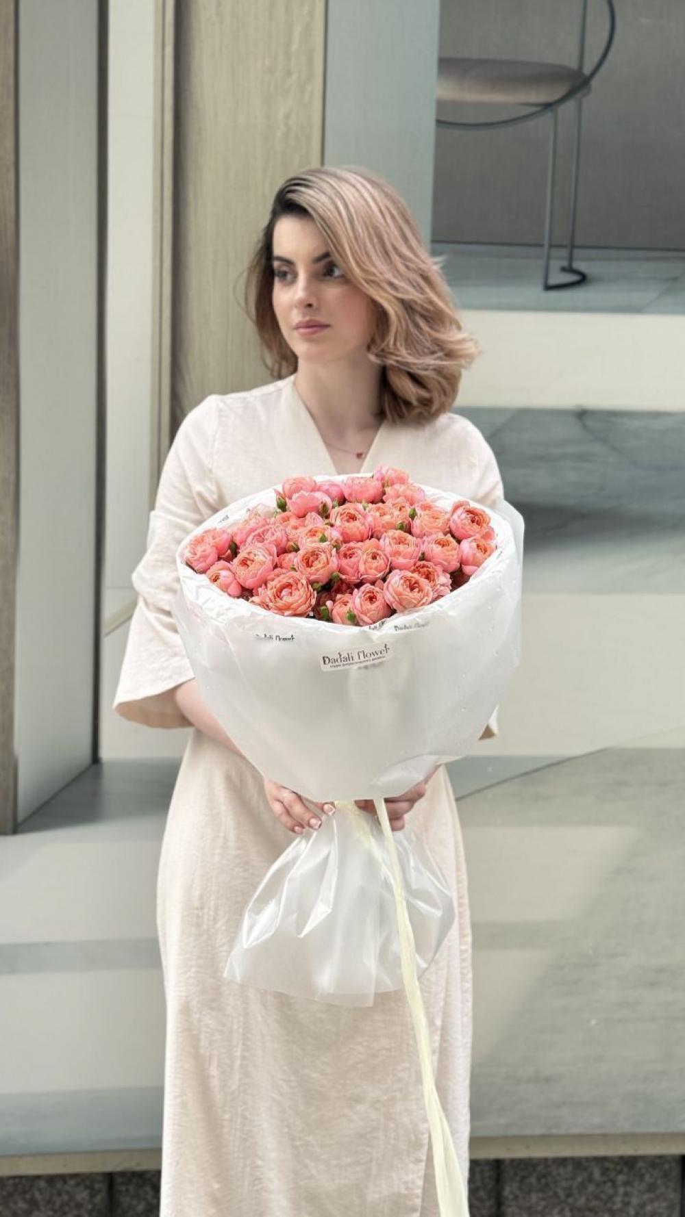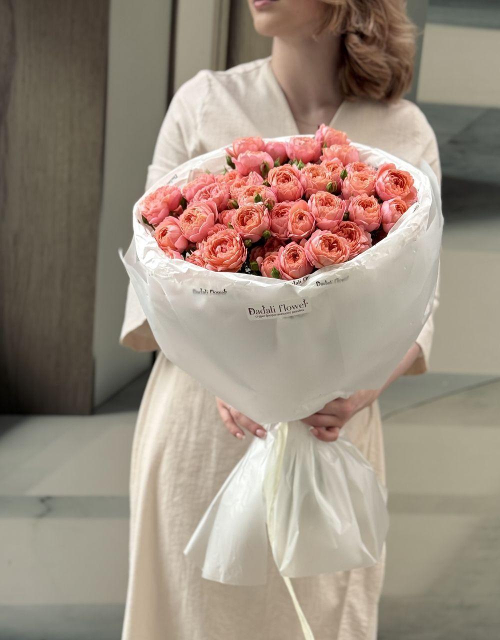 Букет из огненных пионовидных кустовых роз (9 веток)