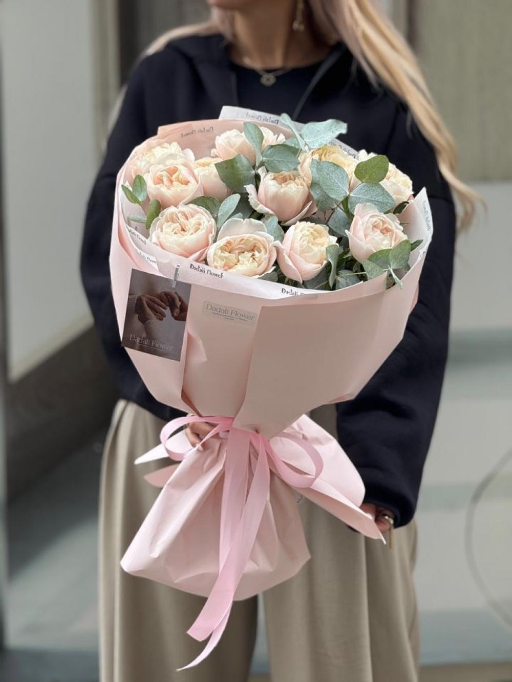 На выполнение этой композиции нам понадобится чуть больше времени. Каждый наш букет уникален. Все их невозможно повторить в точности из за сезонности и природной уникальности внешнего вида каждого цветка. Но мы сохраним размер, атмосферу и стилистику. Если вы хотите выбрать готовую композицию, рекомендуем перейти в раздел Онлайн-Витрины