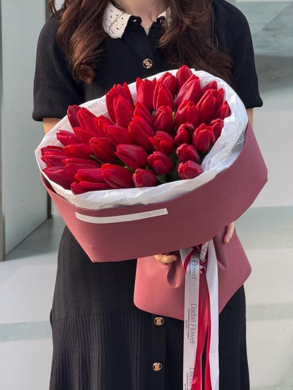 Букет из 45 тюльпанов в упаковке. Этот букет - само воплощение Весны, замершее в нежных лепестках. Магия этих цветов в том, как они продолжают расти и менять свои изгибы прямо в вазе. Вы всегда можете заказать такой букет на нашем сайте, цвет можно подобрать с менеджером по номеру телефона 89280817005.