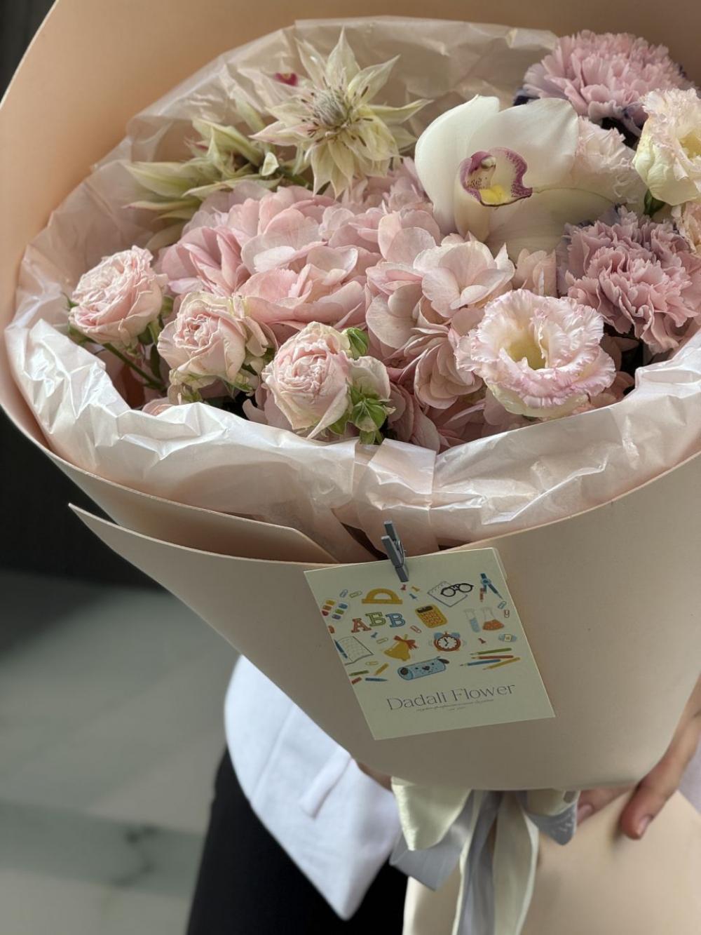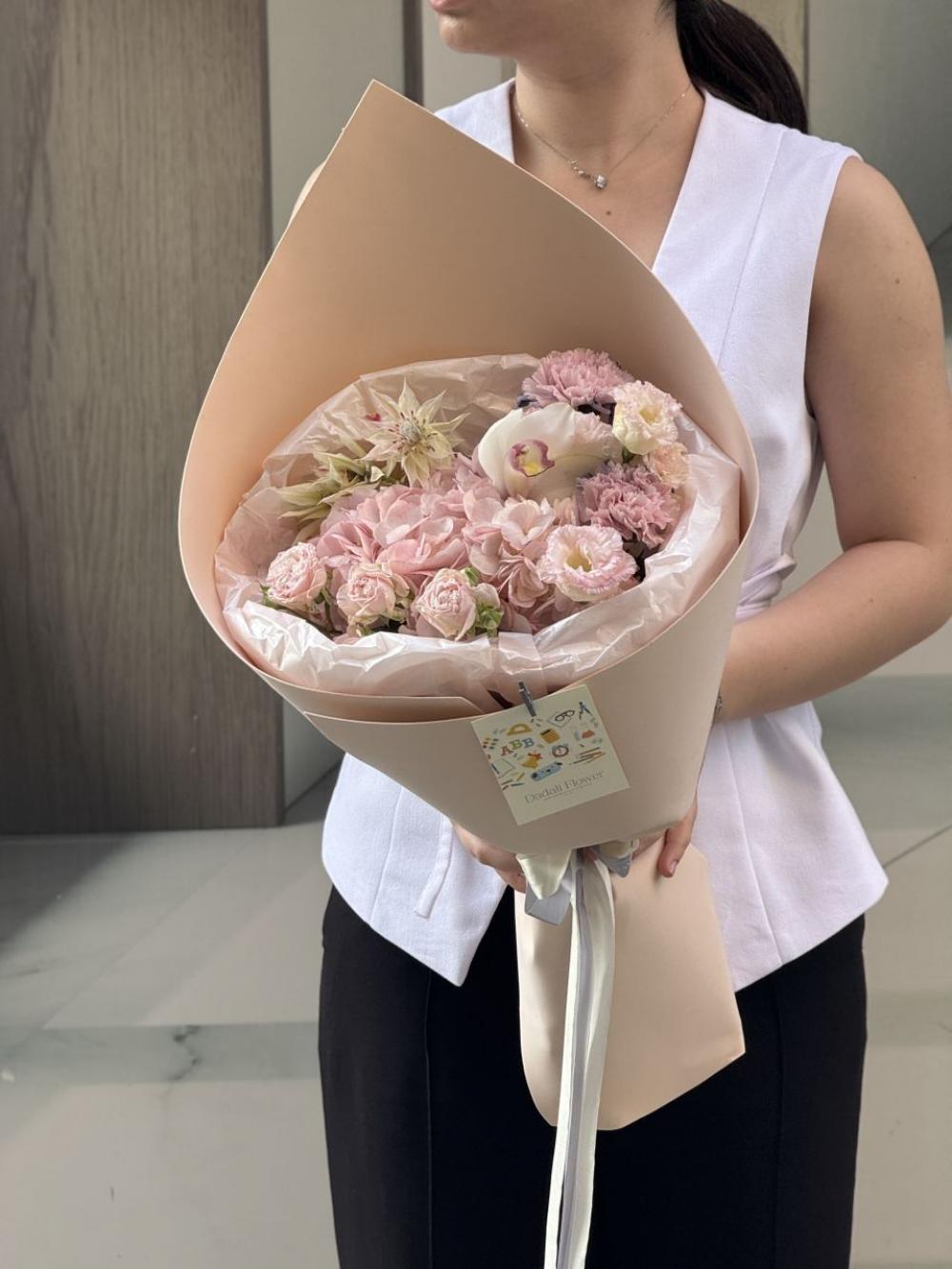 На выполнение этой композиции нам понадобится чуть больше времени. Каждый наш букет уникален. Все их невозможно повторить в точности из за сезонности и природной уникальности внешнего вида каждого цветка. Но мы сохраним размер, атмосферу и стилистику. Если вы хотите выбрать готовую композицию, рекомендуем перейти в раздел Онлайн-Витрины