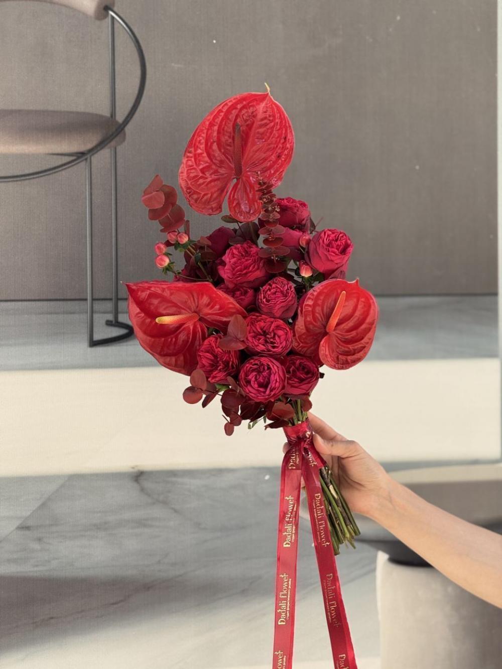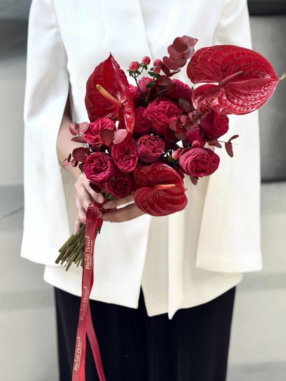 На выполнение этой композиции нам понадобится чуть больше времени. Каждый наш букет уникален. Все их невозможно повторить в точности из за сезонности и природной уникальности внешнего вида каждого цветка. Но мы сохраним размер, атмосферу и стилистику. Если вы хотите выбрать готовую композицию, рекомендуем перейти в раздел Онлайн-Витрины