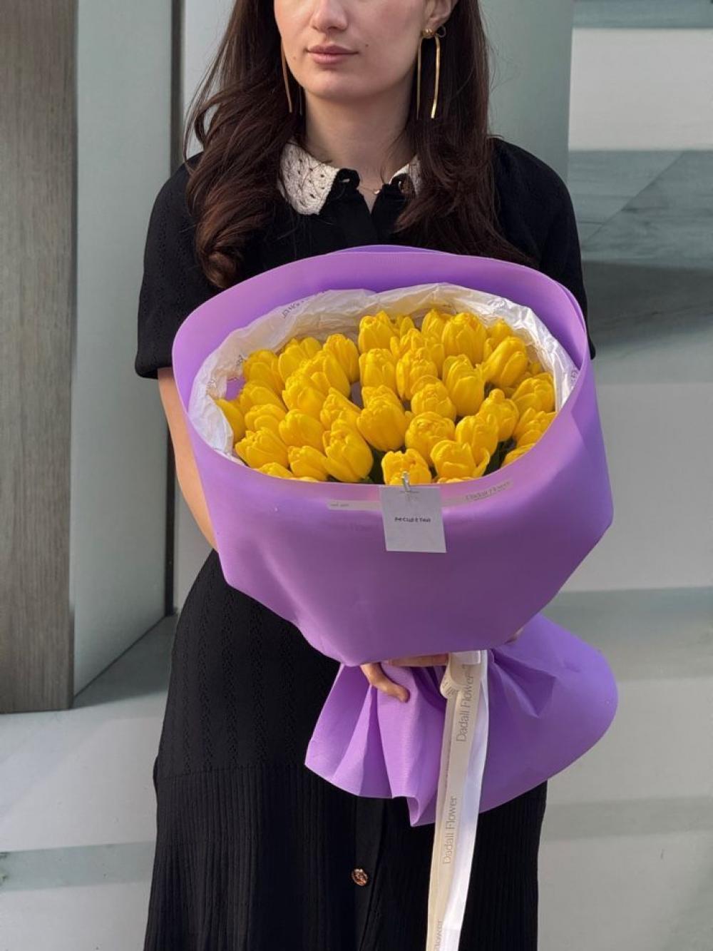 Букет из 45 тюльпанов в упаковке. Этот букет - само воплощение Весны, замершее в нежных лепестках. Магия этих цветов в том, как они продолжают расти и менять свои изгибы прямо в вазе. Вы всегда можете заказать такой букет на нашем сайте, цвет можно подобрать с менеджером по номеру телефона 89280817005.