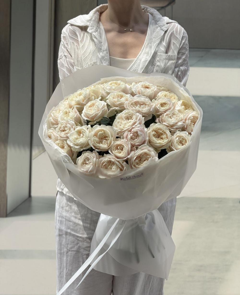 На выполнение этой композиции нам понадобится чуть больше времени. Каждый наш букет уникален. Все их невозможно повторить в точности из за сезонности и природной уникальности внешнего вида каждого цветка. Но мы сохраним размер, атмосферу и стилистику. Если вы хотите выбрать готовую композицию, рекомендуем перейти в раздел Онлайн-Витрины