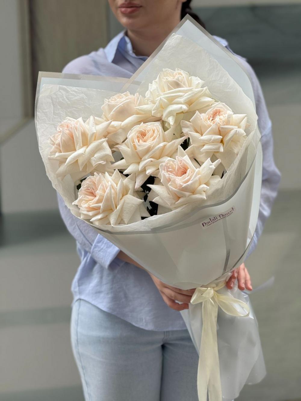 На выполнение этой композиции нам понадобится чуть больше времени. Каждый наш букет уникален. Все их невозможно повторить в точности из за сезонности и природной уникальности внешнего вида каждого цветка. Но мы сохраним размер, атмосферу и стилистику. Если вы хотите выбрать готовую композицию, рекомендуем перейти в раздел Онлайн-Витрины