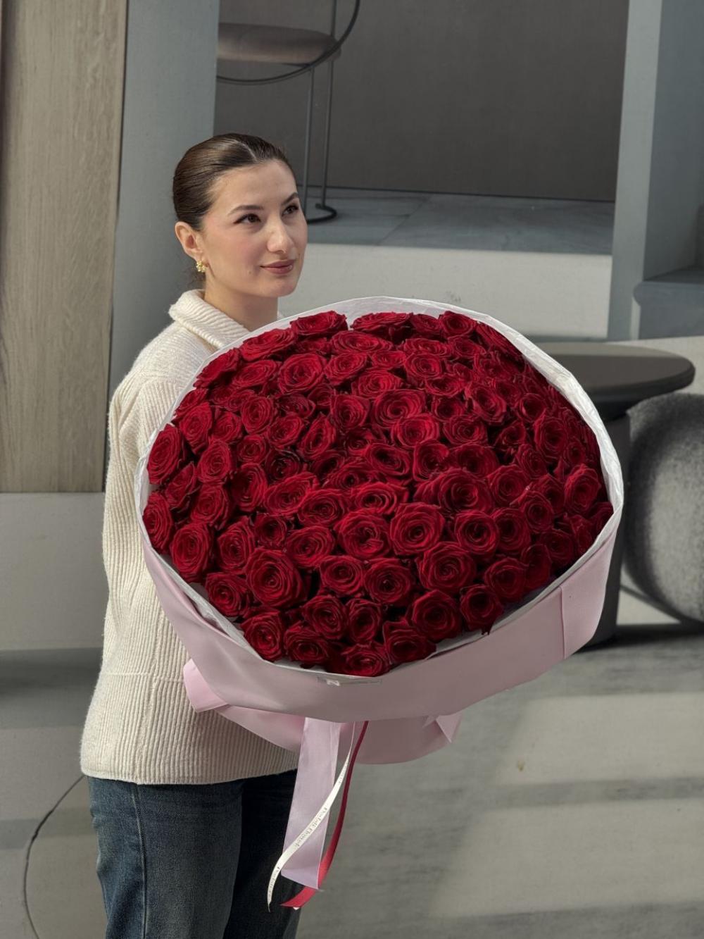 Букет из 101 московской розы 60см