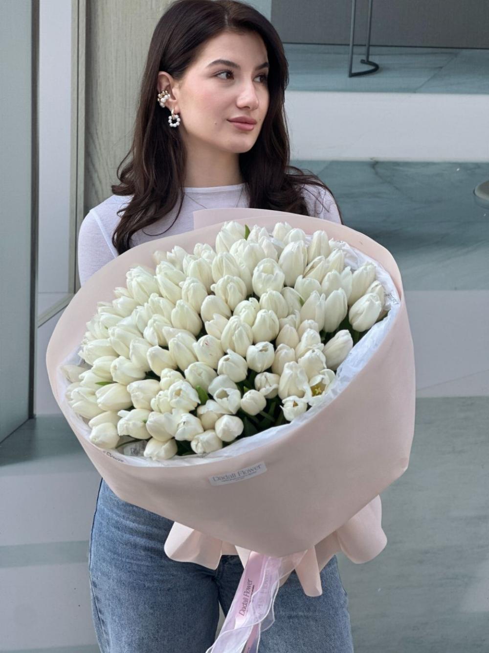 Этот букет из 101 тюльпана белого цвета - само воплощение нежности и весеннего пробуждения. Лаконичные и в то же время изысканные, тюльпаны словно нашептывают о самых искренних чувствах, наполняя пространство свежестью и легким, едва уловимым ароматом первой Весны. Вы всегда можете заказать такой букет в нашем салоне. Уточнение по цвету и наличию у наших менеджеров по тел.89280817005 .