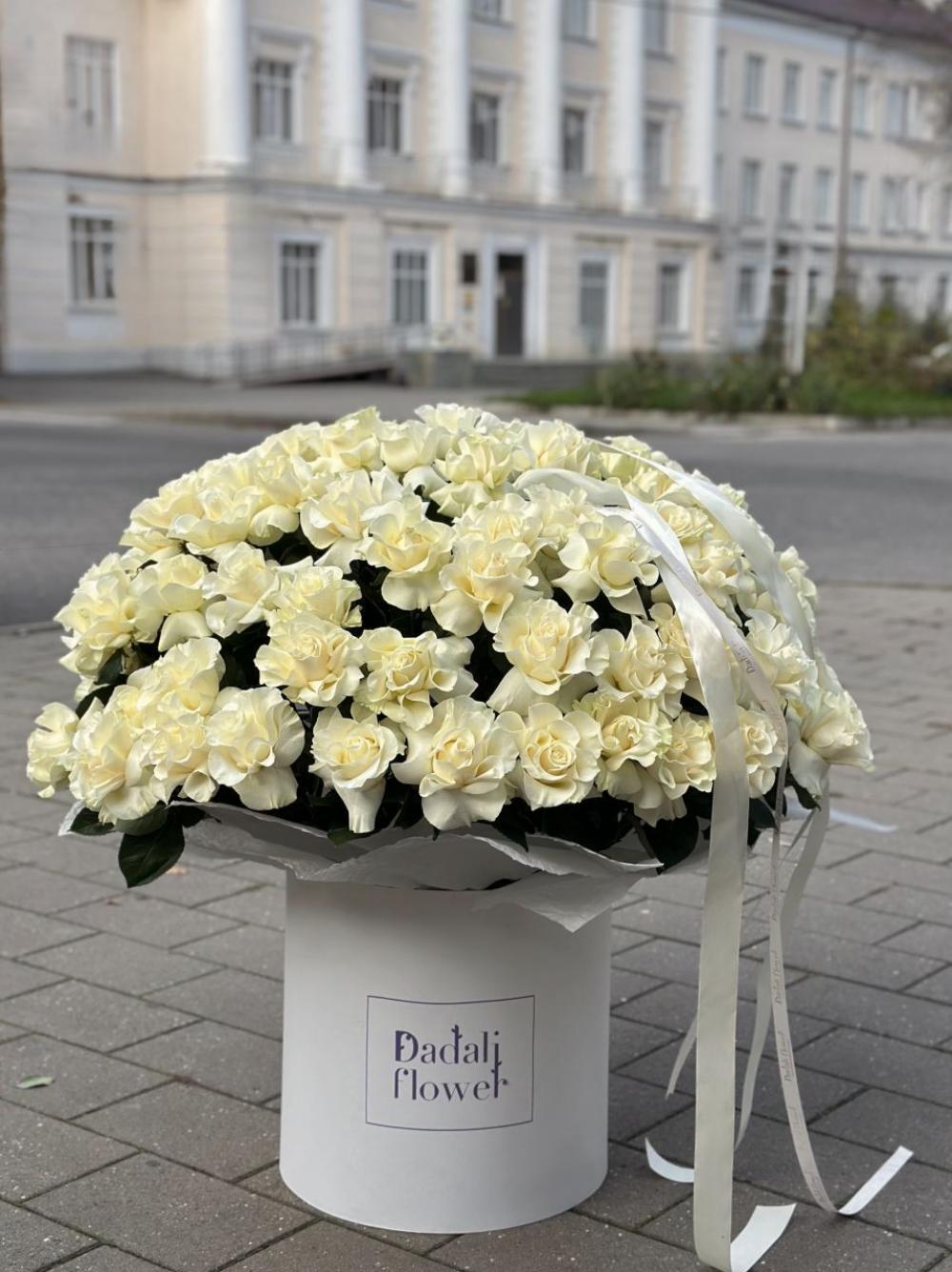 На выполнение этой композиции нам понадобится чуть больше времени. Каждый наш букет уникален. Все их невозможно повторить в точности из за сезонности и природной уникальности внешнего вида каждого цветка. Но мы сохраним размер, атмосферу и стилистику. Если вы хотите выбрать готовую композицию, рекомендуем перейти в раздел Онлайн-Витрины