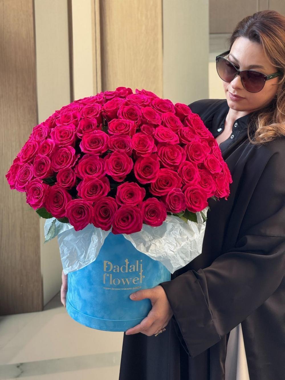 Композиция из 101 розовых роз в шляпной коробке