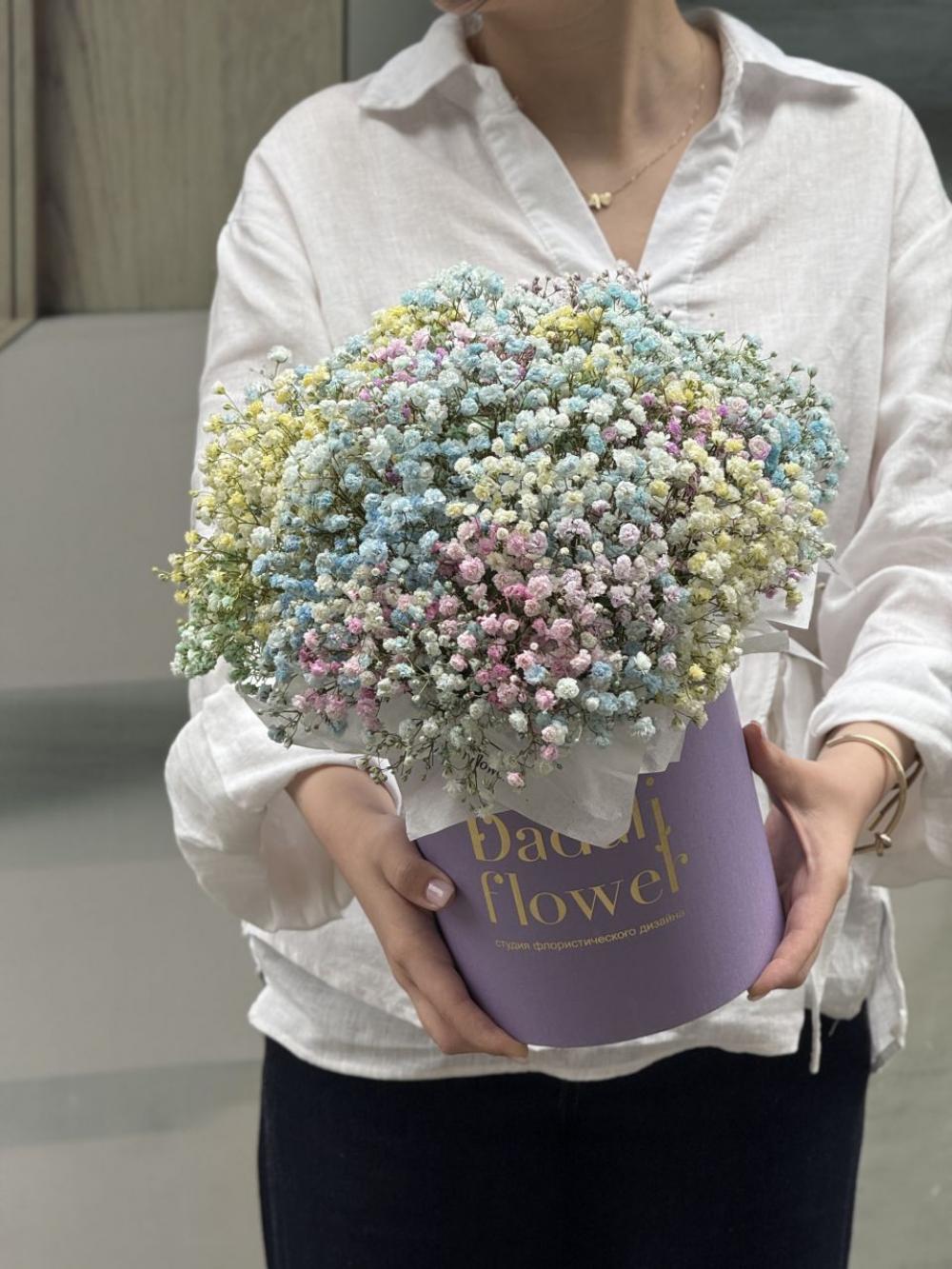 Яркая коробка со стойкой гипсофилой
