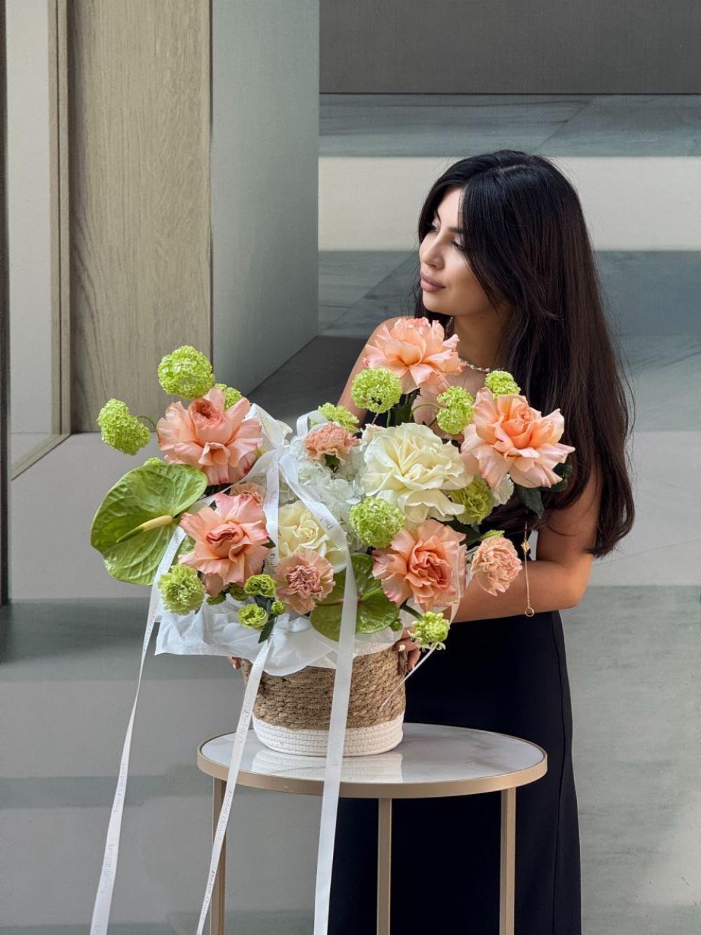 На выполнение этой композиции нам понадобится чуть больше времени. Каждый наш букет уникален. Все их невозможно повторить в точности из за сезонности и природной уникальности внешнего вида каждого цветка. Но мы сохраним размер, атмосферу и стилистику. Если вы хотите выбрать готовую композицию, рекомендуем перейти в раздел Онлайн-Витрины