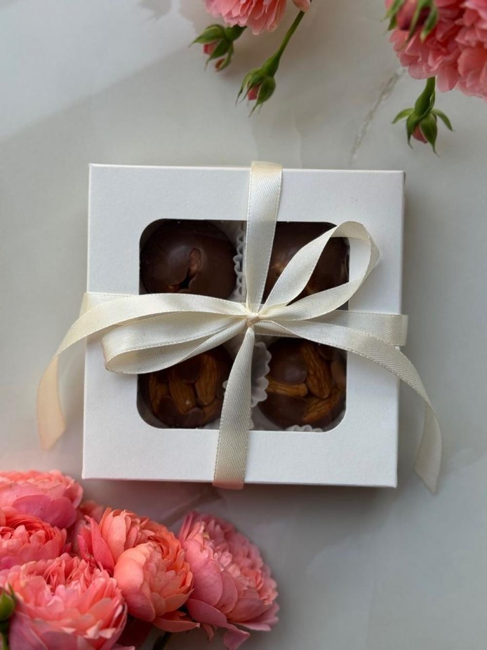 Конфеты с миндалем,фундуком и арахисом покрыты толстым слоем великолепной молочной глазури. Шоколад и орехи заряжают на все 100%! Идеальное сочетание для того, чтобы порадовать себя и любимых.