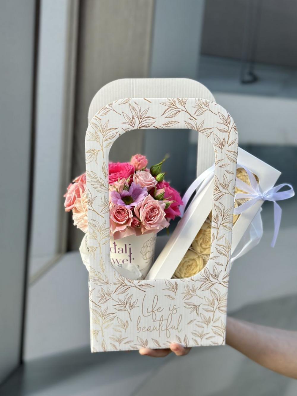На выполнение этой композиции нам понадобится чуть больше времени. Каждый наш букет уникален. Все их невозможно повторить в точности из за сезонности и природной уникальности внешнего вида каждого цветка. Но мы сохраним размер, атмосферу и стилистику. Если вы хотите выбрать готовую композицию, рекомендуем перейти в раздел Онлайн-Витрины